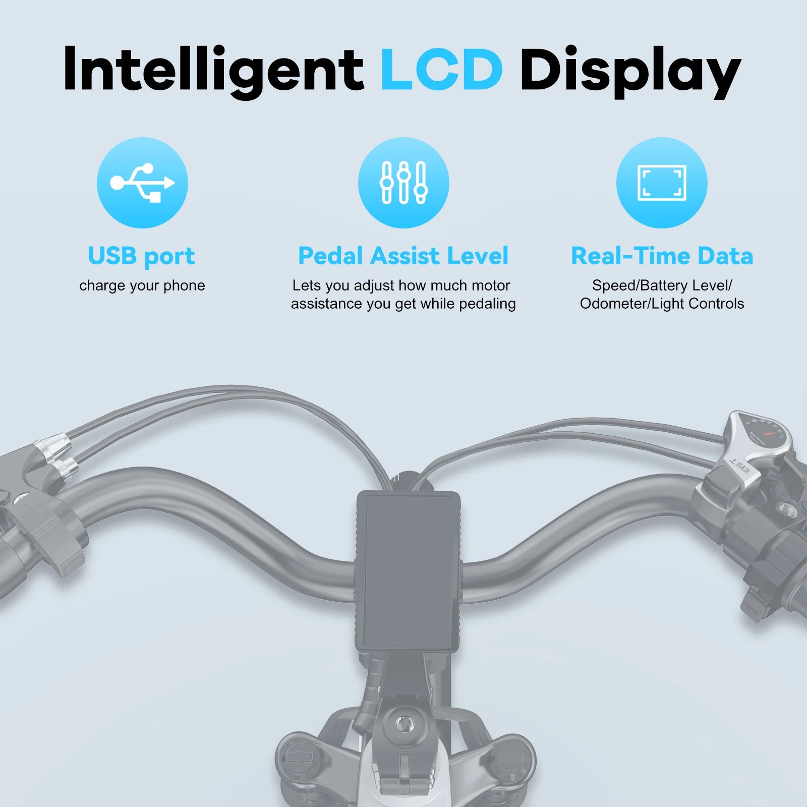【LCD Display】E-Bicycles with 5 Riding Modes(Pure electric mode,Pedal assist mode,Classic bike mode) and 5 Pedal Assist Levels(PAS) for your choice.The color LCD display shows real time speed, battery power, pedal assist levels, mileage and more,it's easy for you to track your rides in day and night.The cruise control function can be switched on and off easily with the push of a button